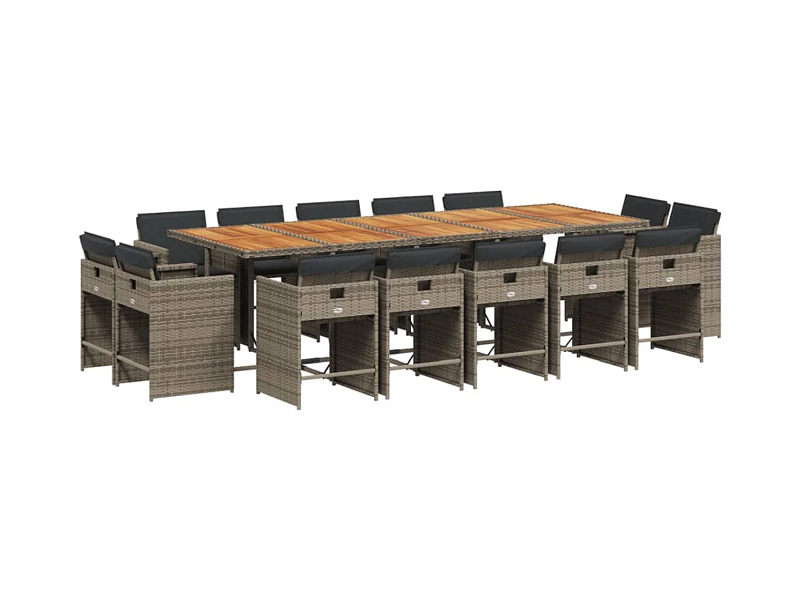 Ensemble à manger de jardin 15 pièces coussins gris résine tressée