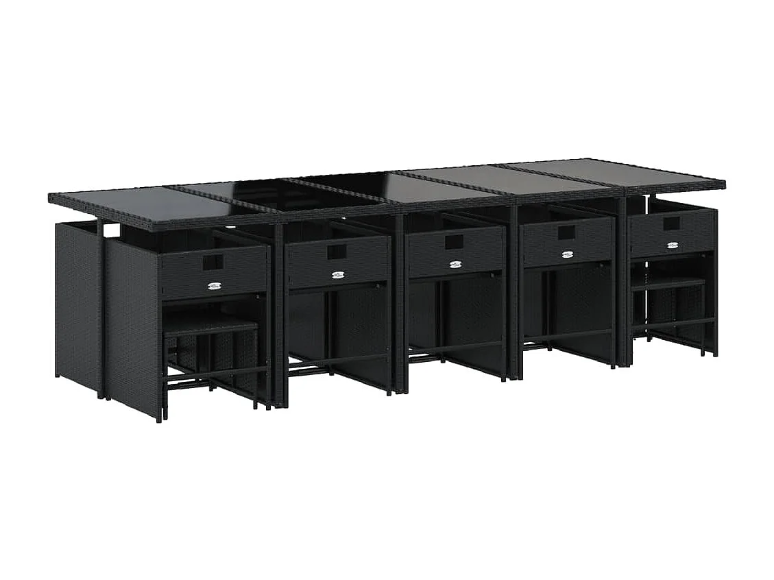 Ensemble à manger de jardin 15 pièces coussins noir résine tressée