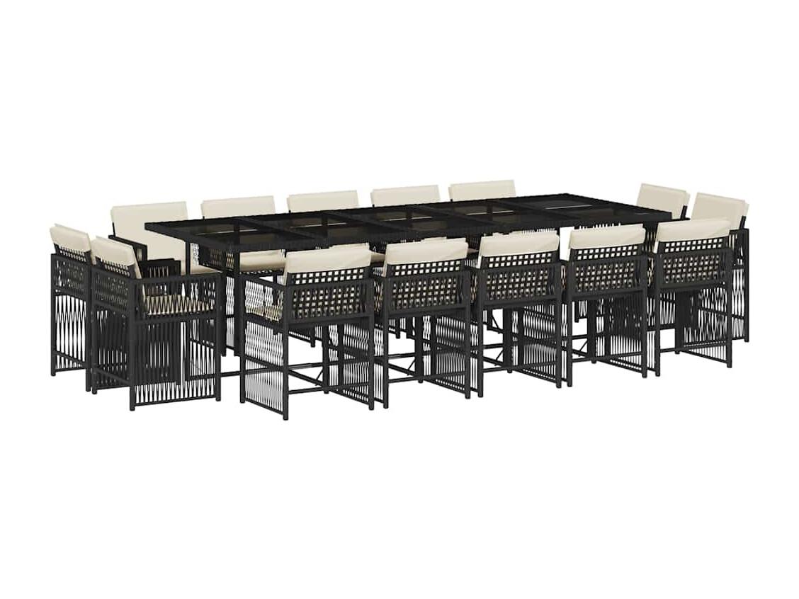 Ensemble à manger de jardin 17 pièces coussins noir résine tressée