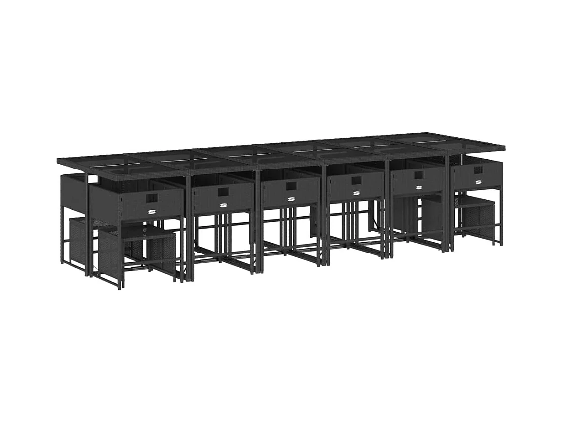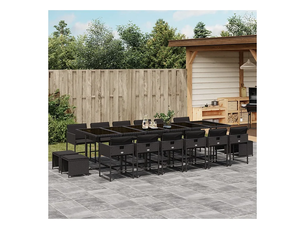 Ensemble à manger de jardin 17 pcs coussins noir résine tressée