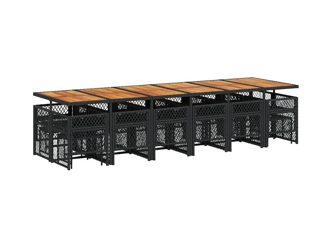 Ensemble à manger de jardin 13 pcs coussins noir résine tressée