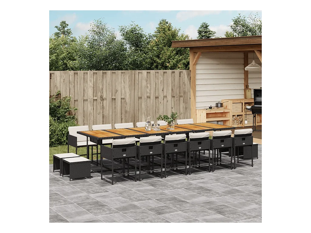 Ensemble à manger de jardin 17 pcs coussins noir résine tressée