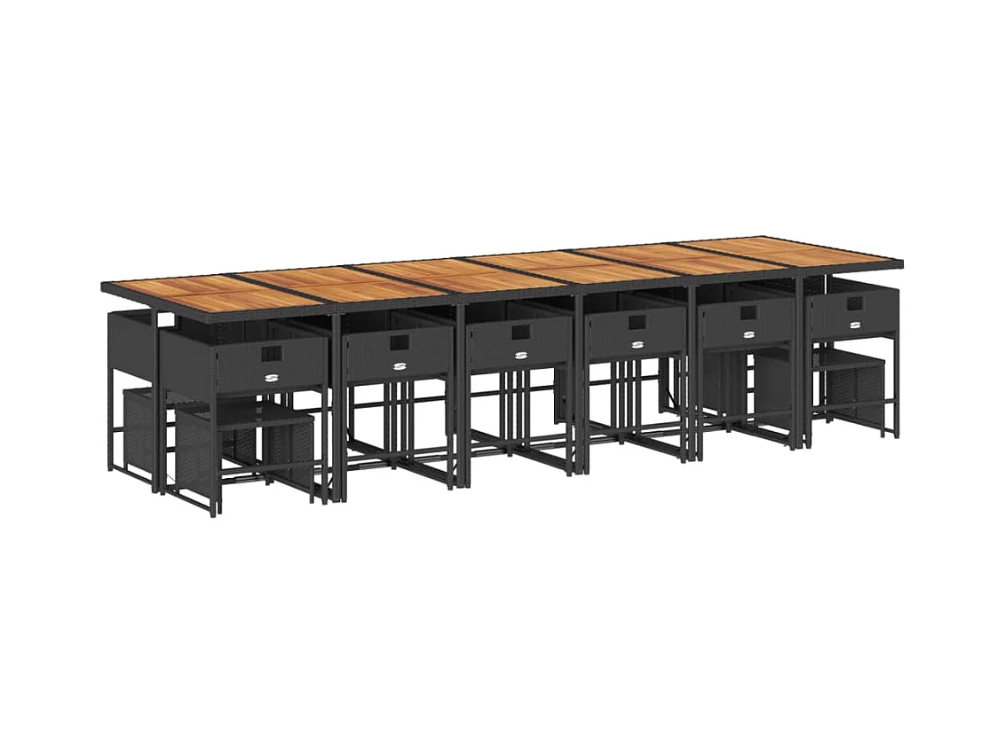 Ensemble à manger de jardin 13 pcs coussins noir résine tressée