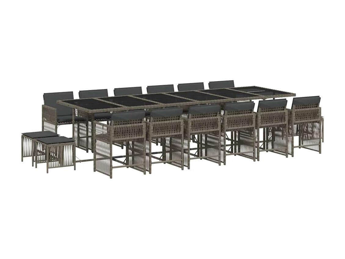 Ensemble à manger de jardin et coussins 17 pièces gris clair rotin