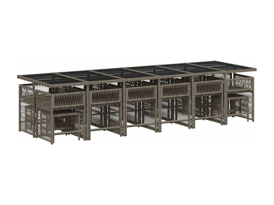 Ensemble à manger de jardin 15 pièces coussins gris résine tressée