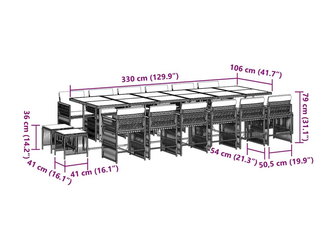 Ensemble à manger de jardin 17 pièces et coussins résine tressée