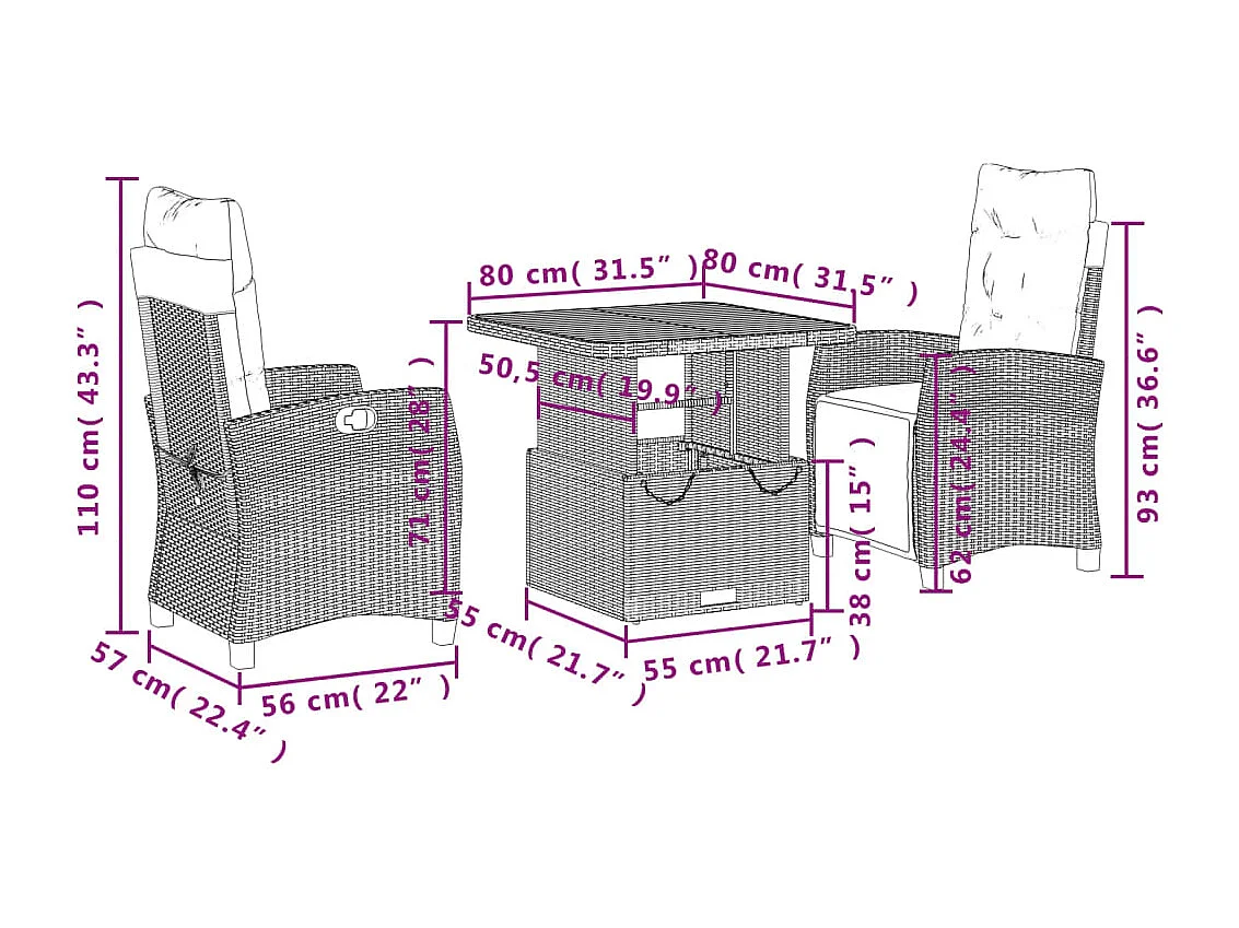 Ensemble Table et chaise de jardin 2 places