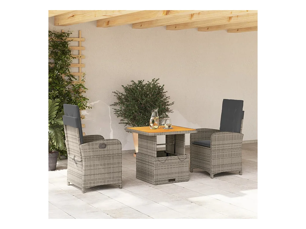 Ensemble de bistro 3 pcs et coussins gris clair résine tressée FR52007