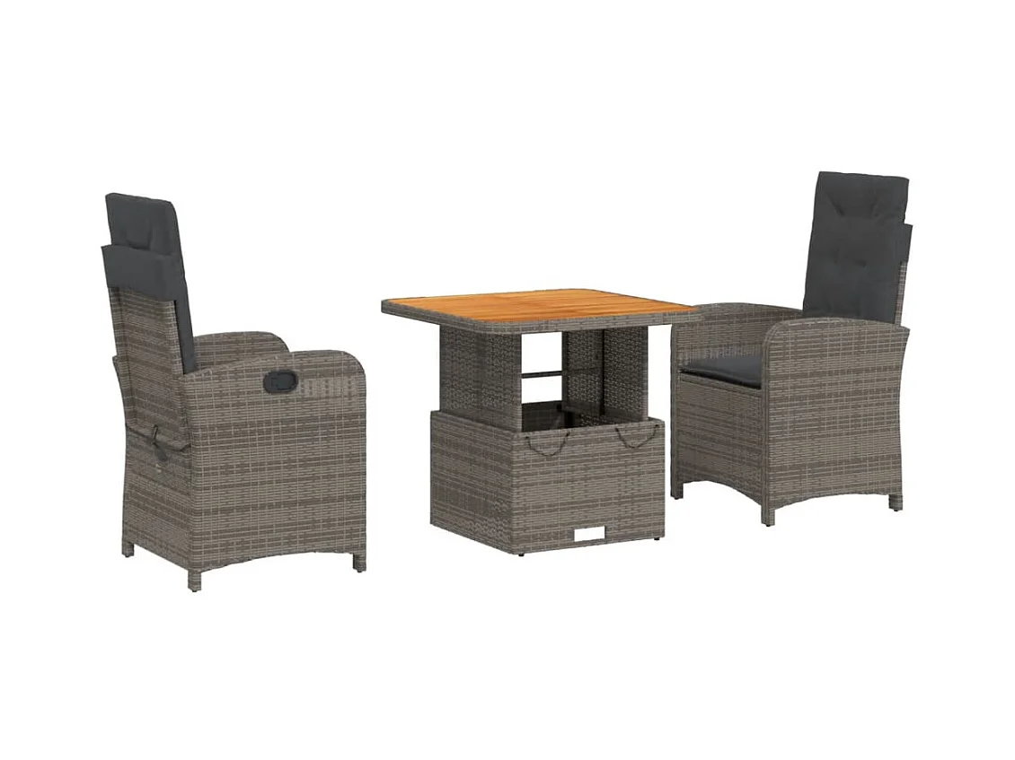Ensemble de bistro 3 pcs avec coussins gris résine tressée FR80036