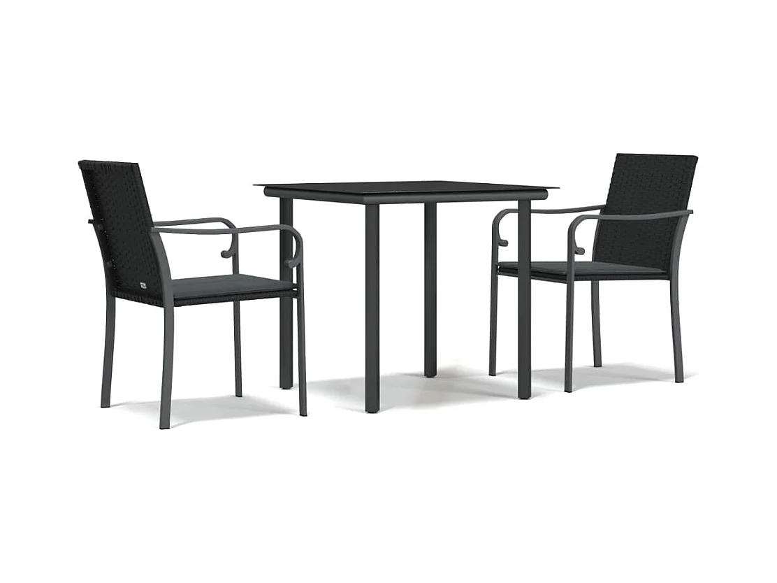 Ensemble à manger de jardin 3 pcs coussins résine tressée acier BE18819
