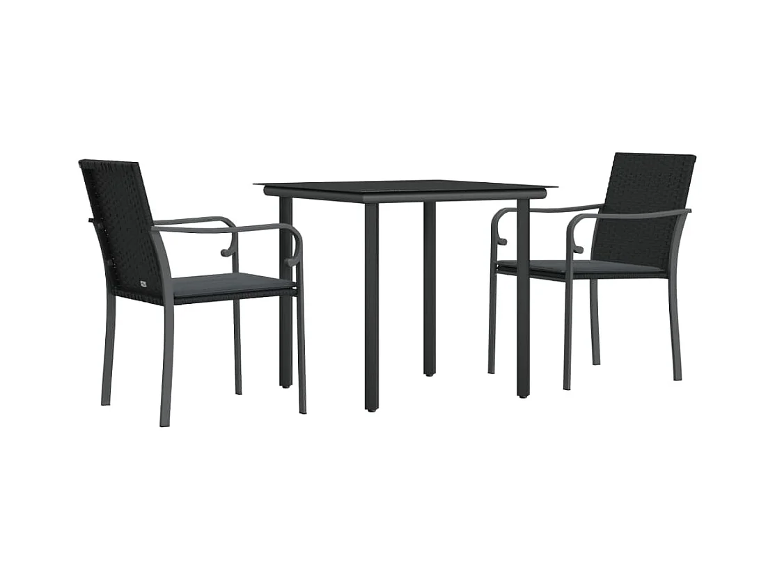 Ensemble de salle à manger de jardin et coussins 3pcs Gris/noir BE21184