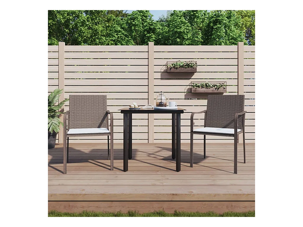 Ensemble à manger de jardin 3 pcs coussins résine tressée acier BE56136