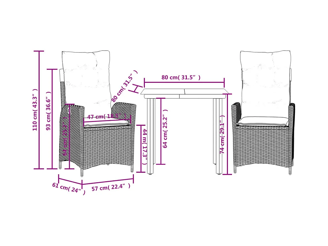Ensemble de bistro 3 pcs avec coussins marron résine tressée