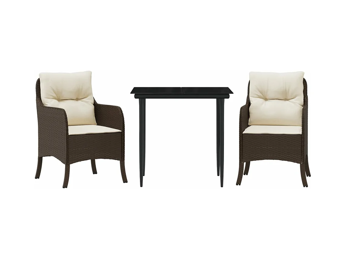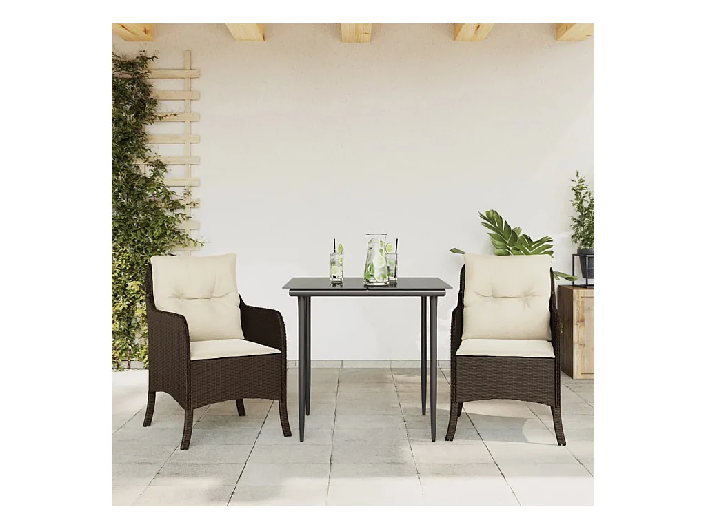 Ensemble à manger de jardin et coussins 3pcs marron rotin verre FR71706