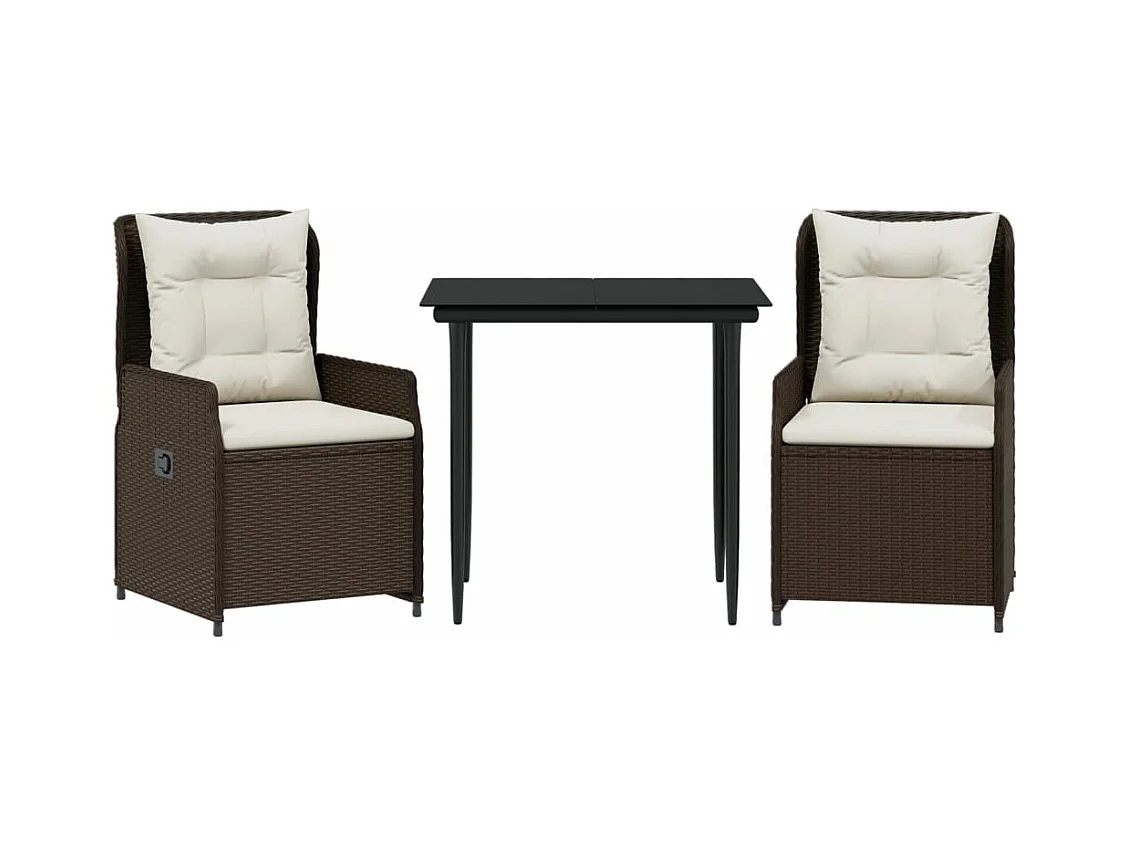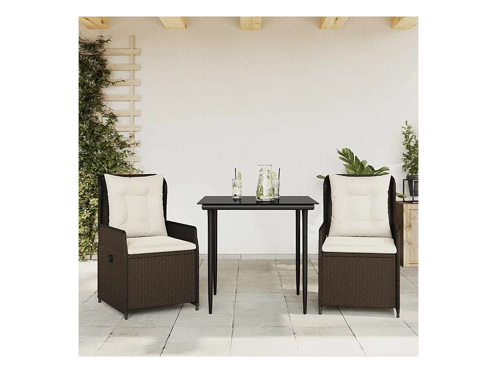 Ensemble à manger de jardin et coussins 3pcs marron rotin verre FR71706