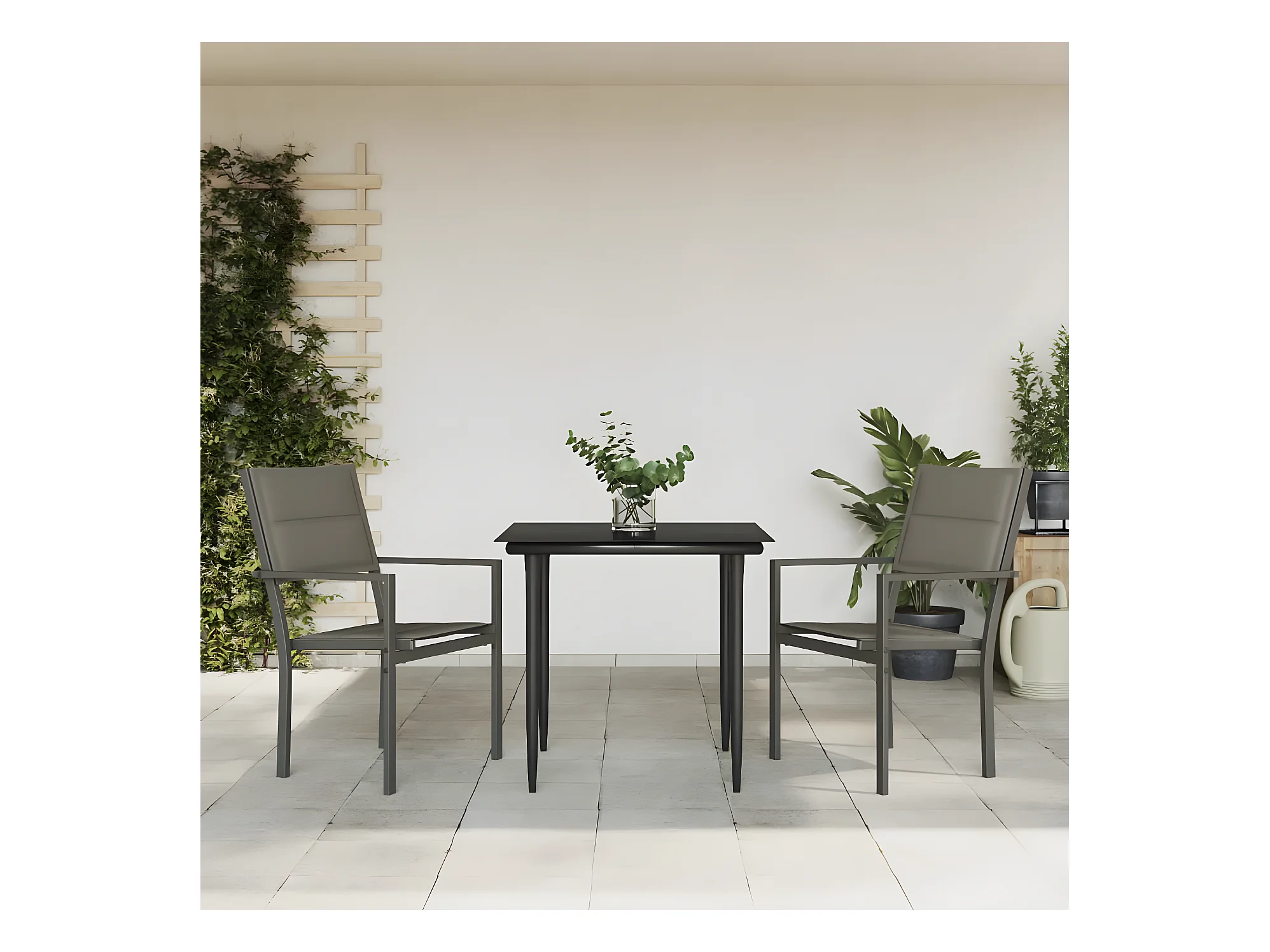 Ensemble à manger de jardin 3 pcs noir textilène et acier BE85204