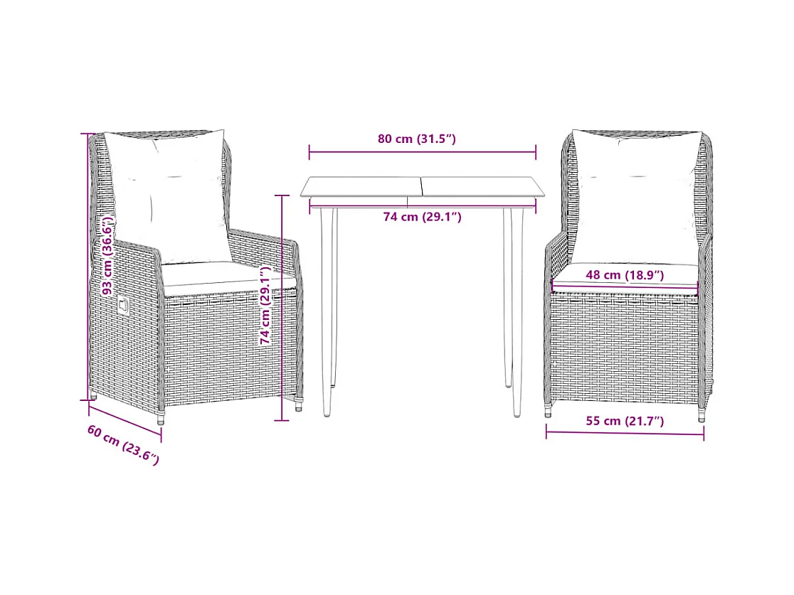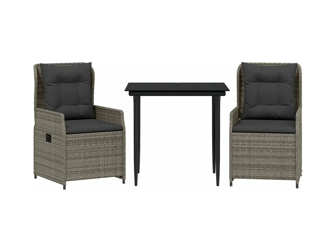 Ensemble à manger de jardin 3 pièces coussins gris résine tressée