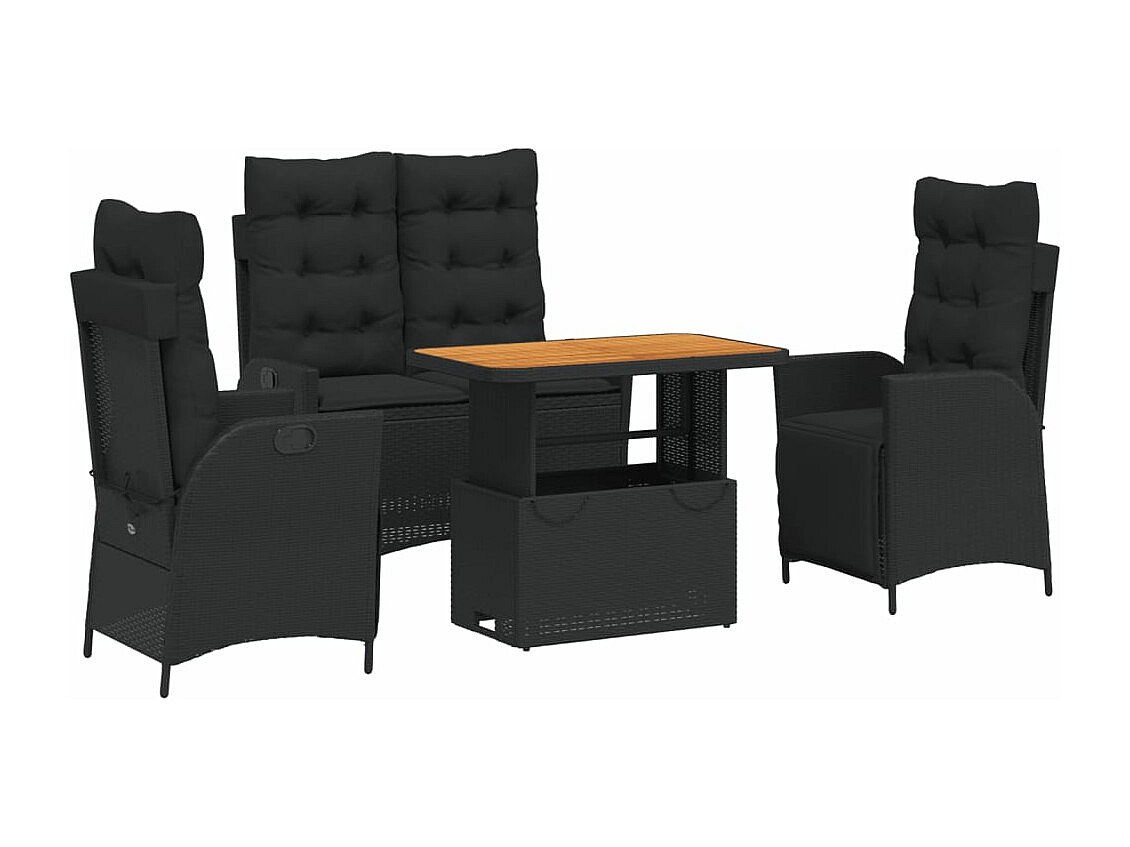Ensemble à manger de jardin 4 pcs avec coussins noir