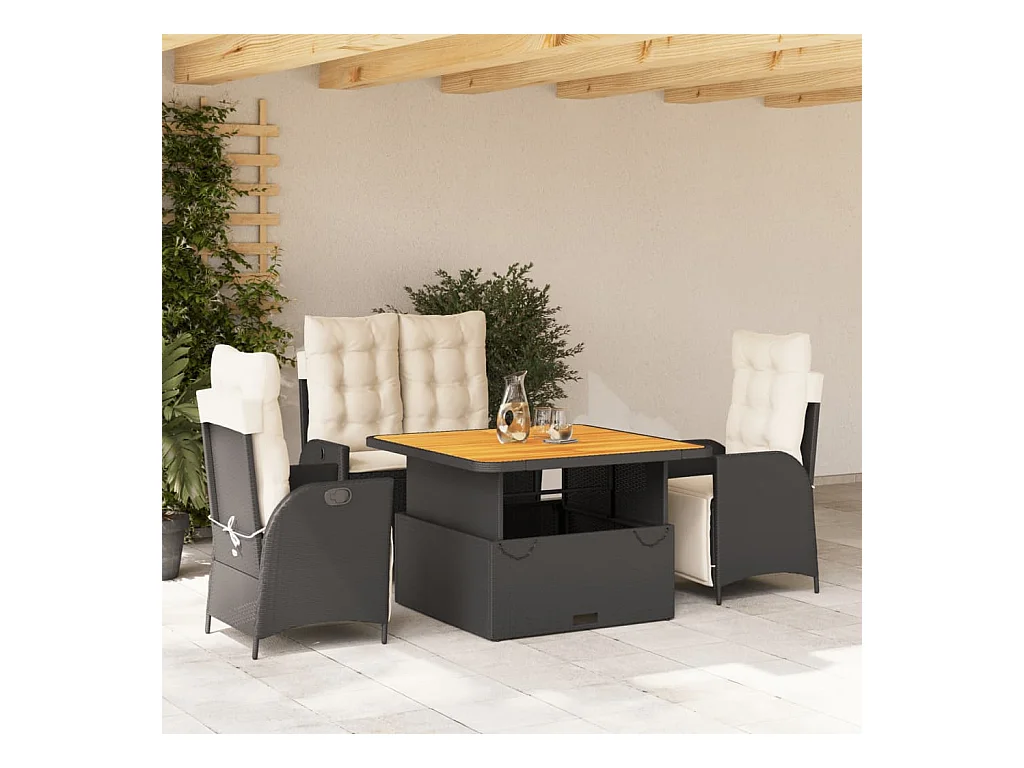 Ensemble à manger de jardin 4 pcs avec coussins noir