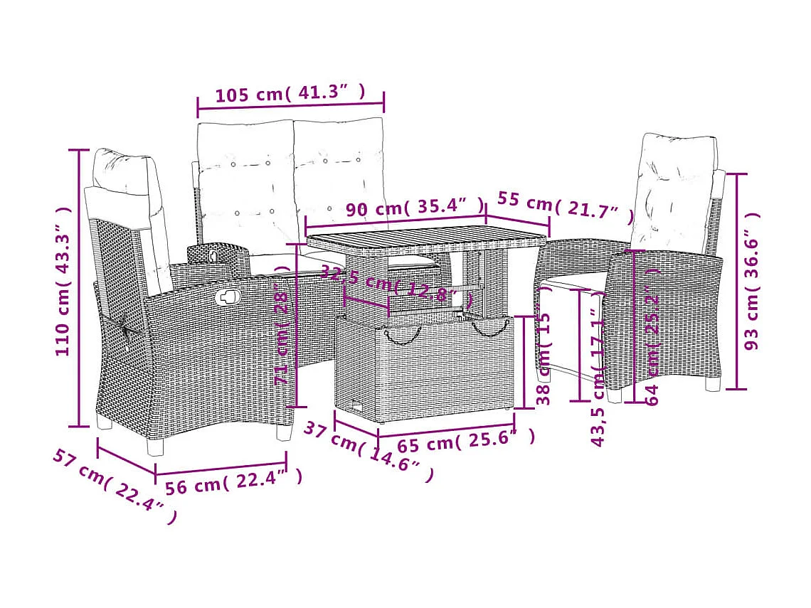 Ensemble à manger de jardin 4 pcs avec coussins noir