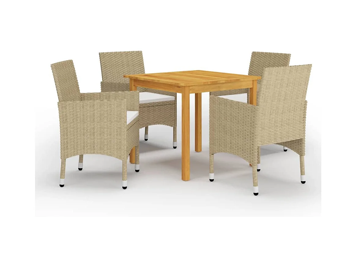 Ensemble à manger de jardin avec coussins 5pcs Beige poly rotin