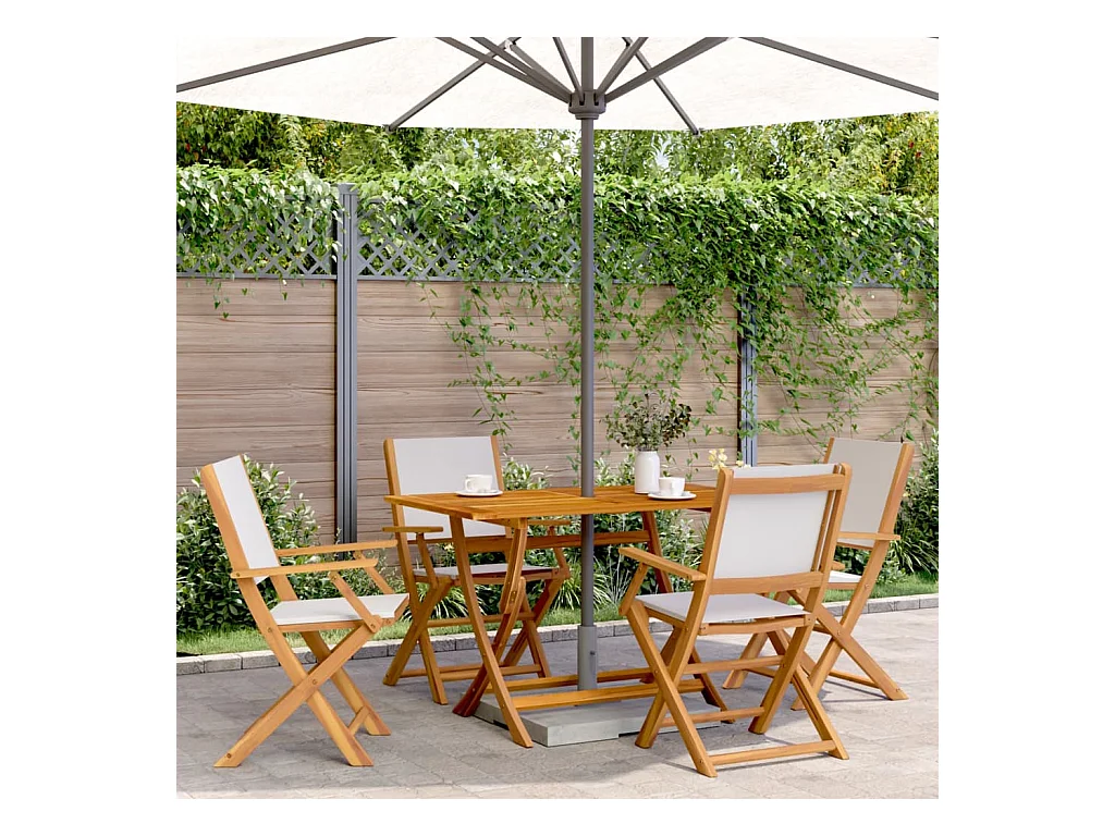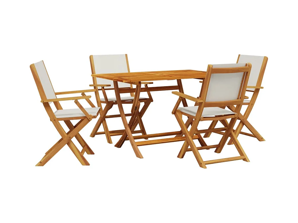 Ensemble à manger de jardin 5 pcs blanc crème tissu bois massif FR97400
