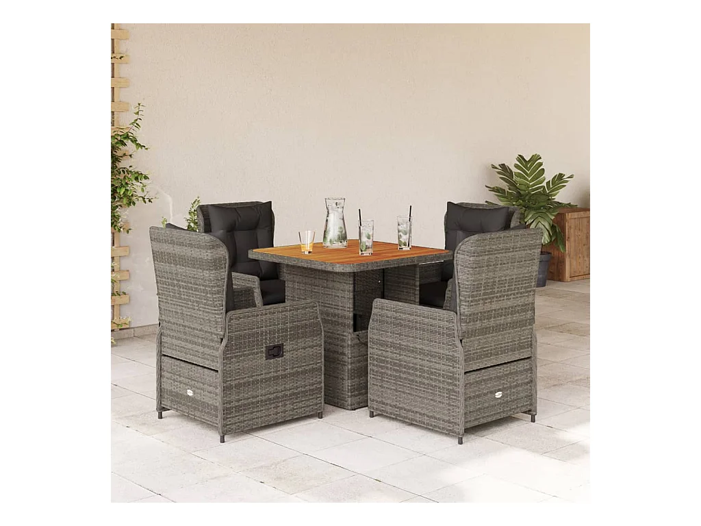 Ensemble à manger de jardin 5 pcs coussins gris résine tressée