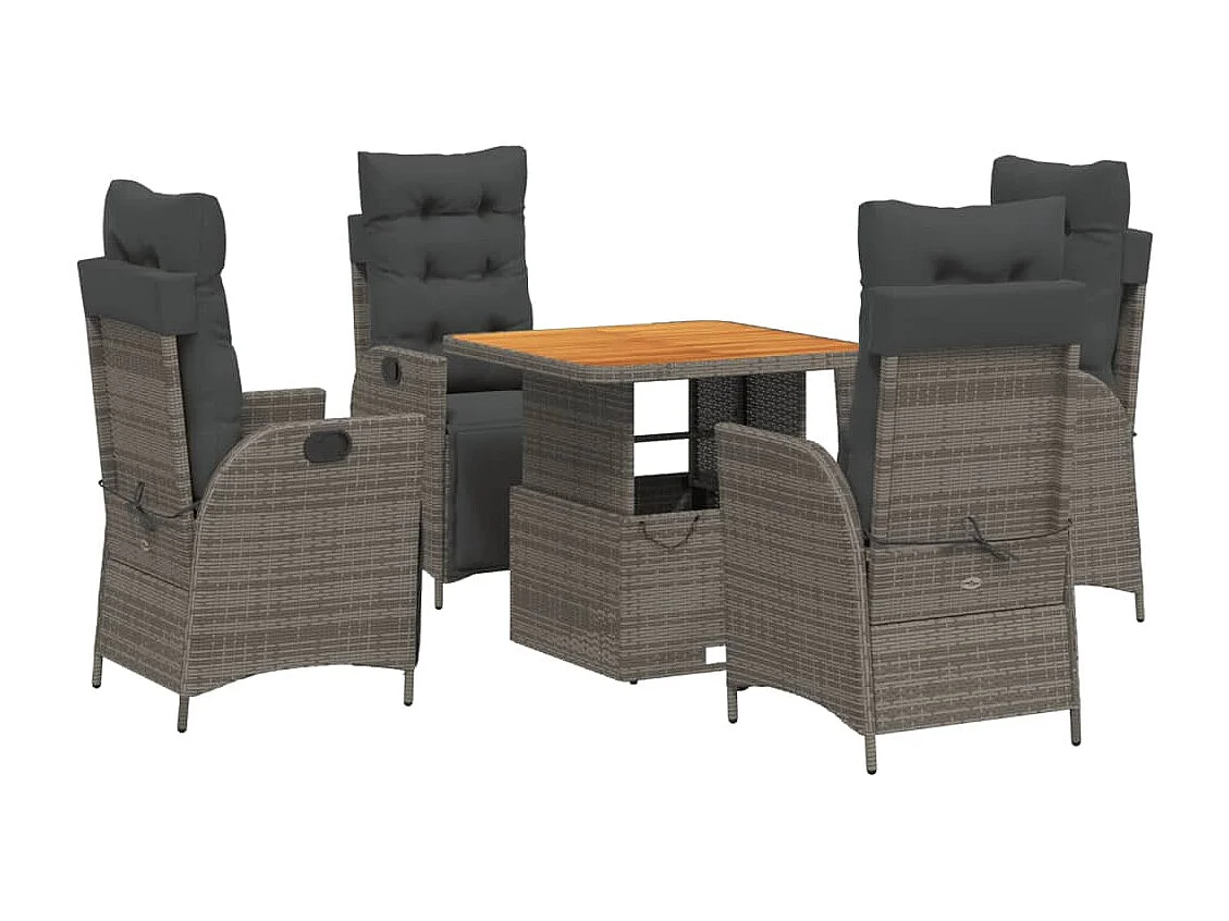 Ensemble à manger de jardin 5 pcs coussins gris résine tressée