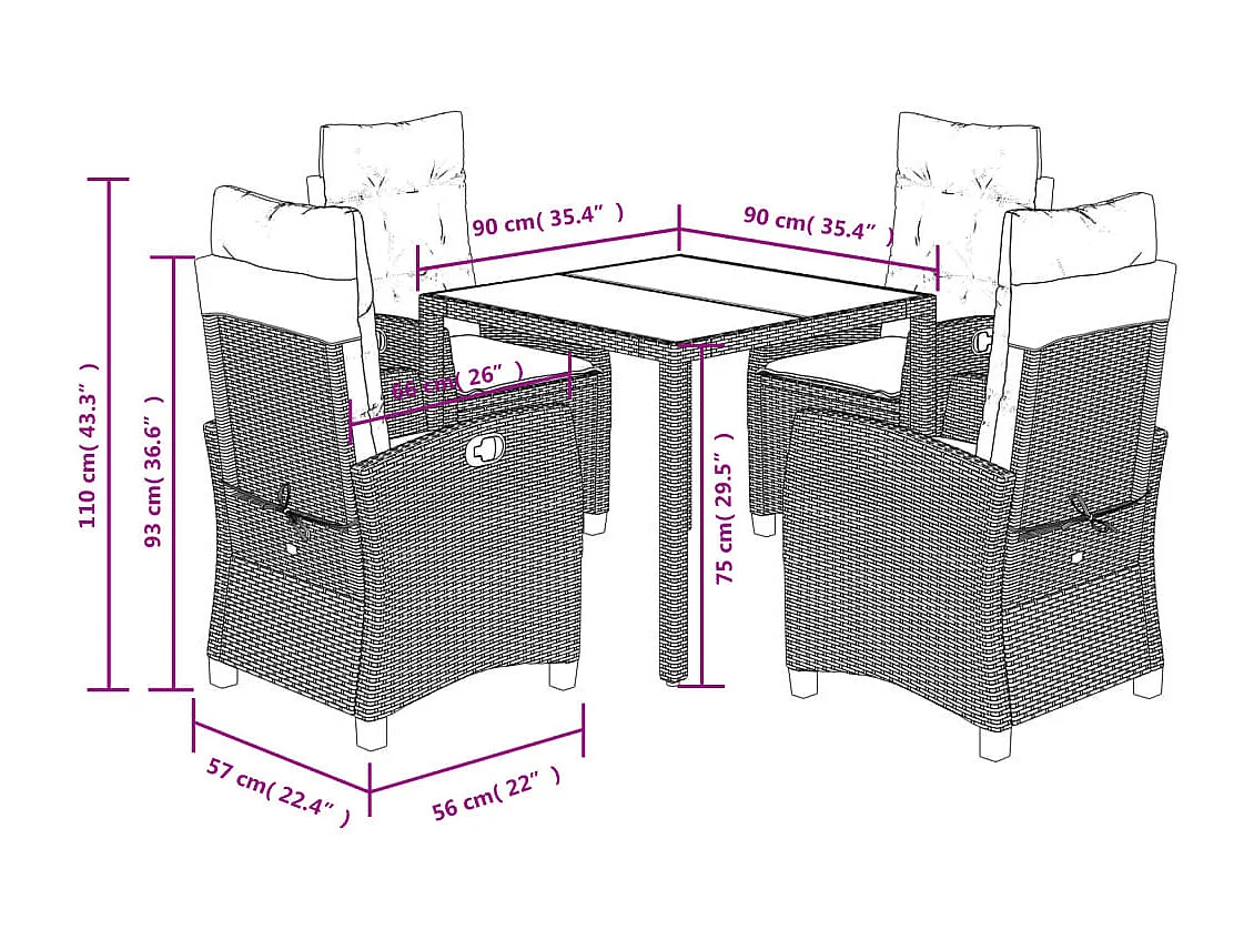 Ensemble à manger de jardin 5 pcs coussins gris résine tressée