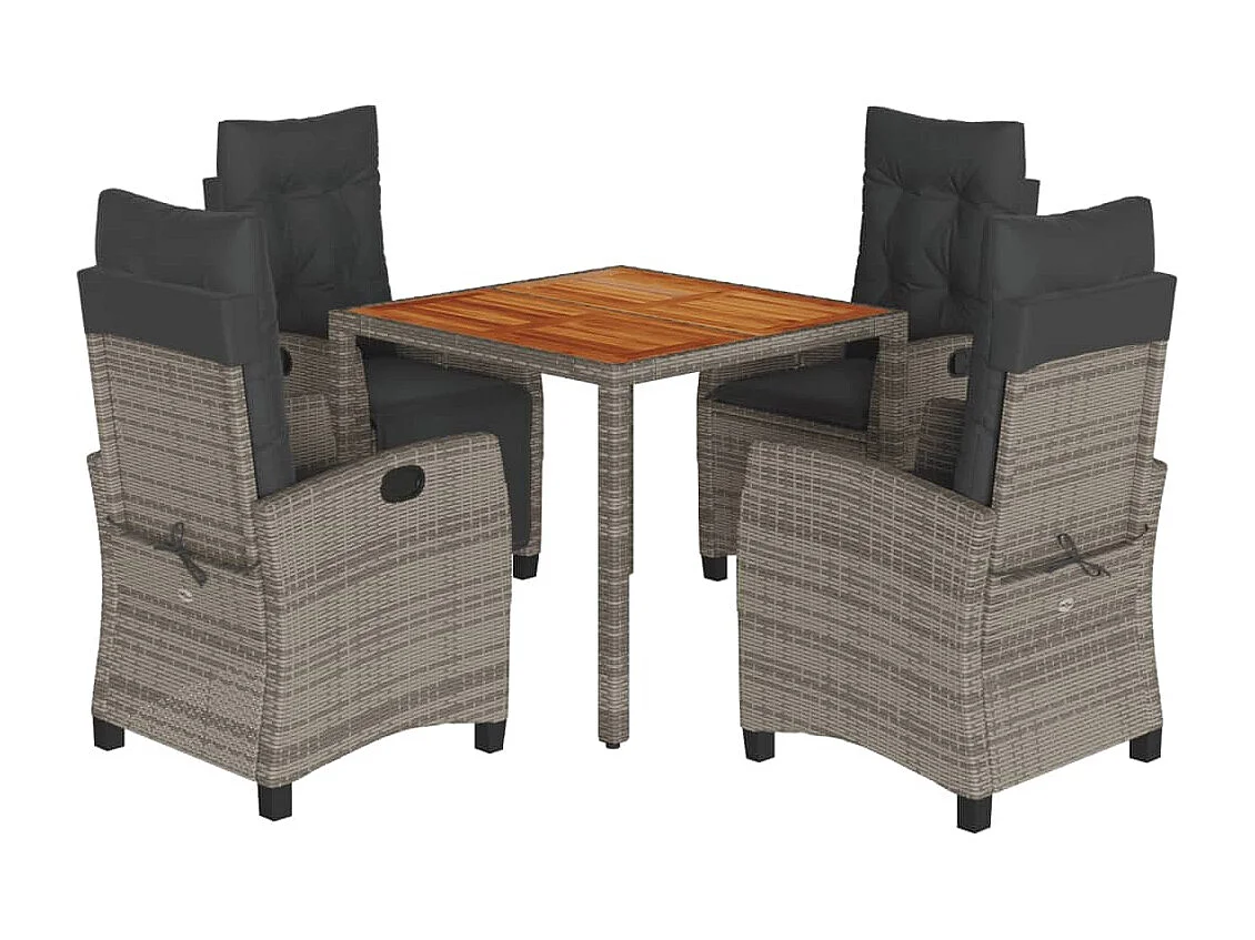 Ensemble à manger de jardin 5 pcs coussins gris résine tressée