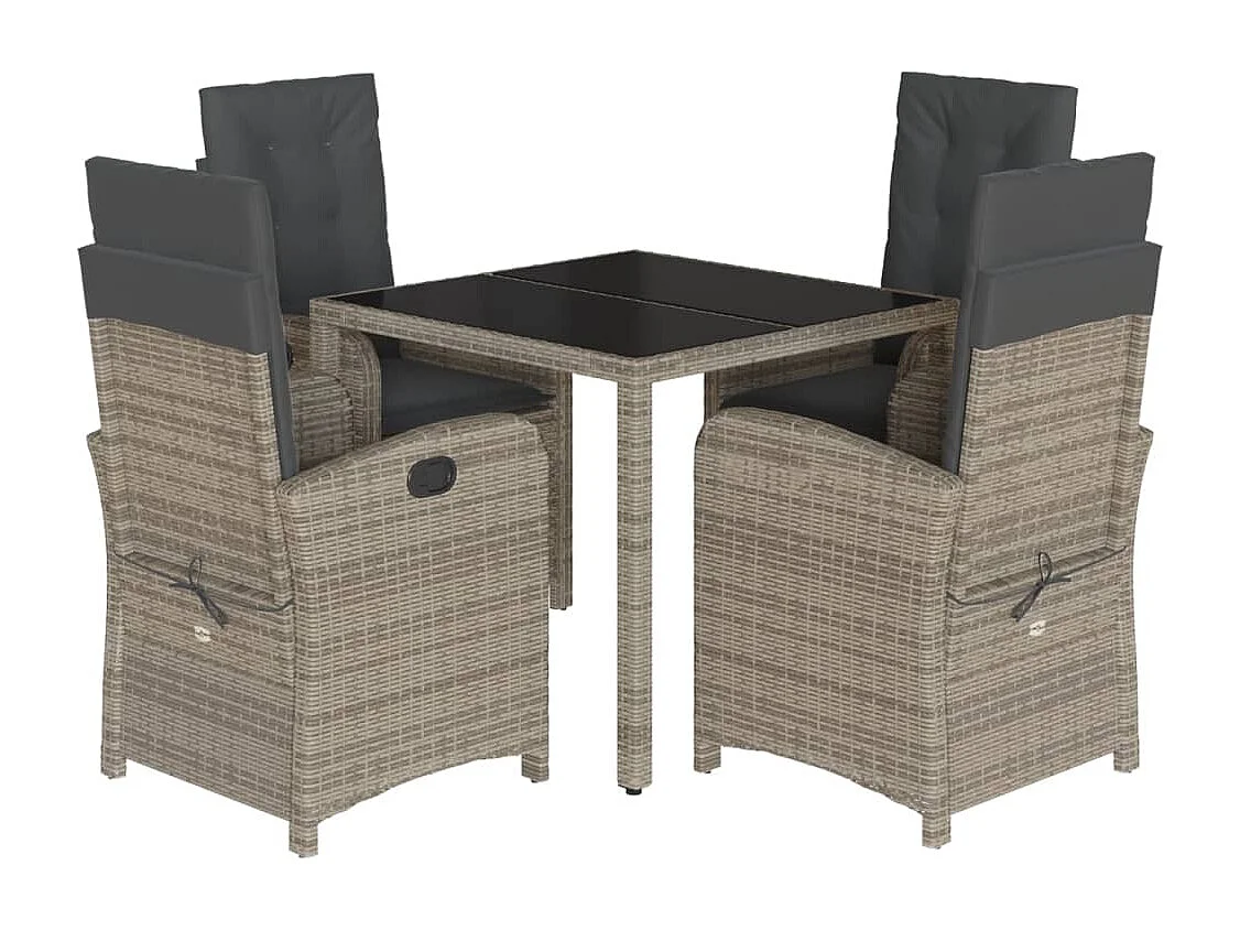 Ensemble à manger de jardin 5 pcs coussins gris résine tressée