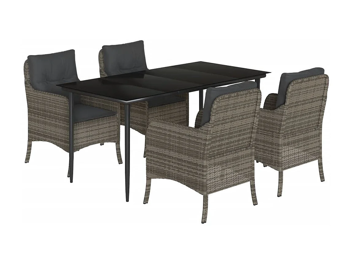 Ensemble à manger de jardin 5 pcs coussins gris résine tressée