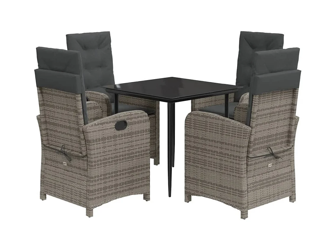 Ensemble à manger de jardin 5 pcs coussins gris résine tressée