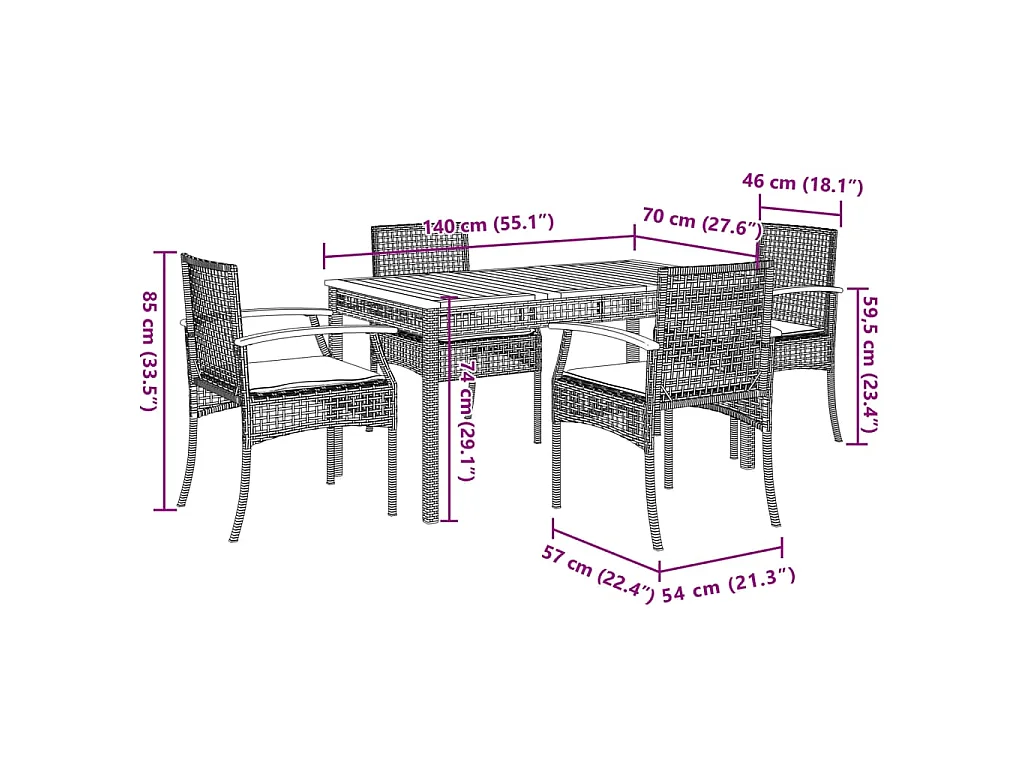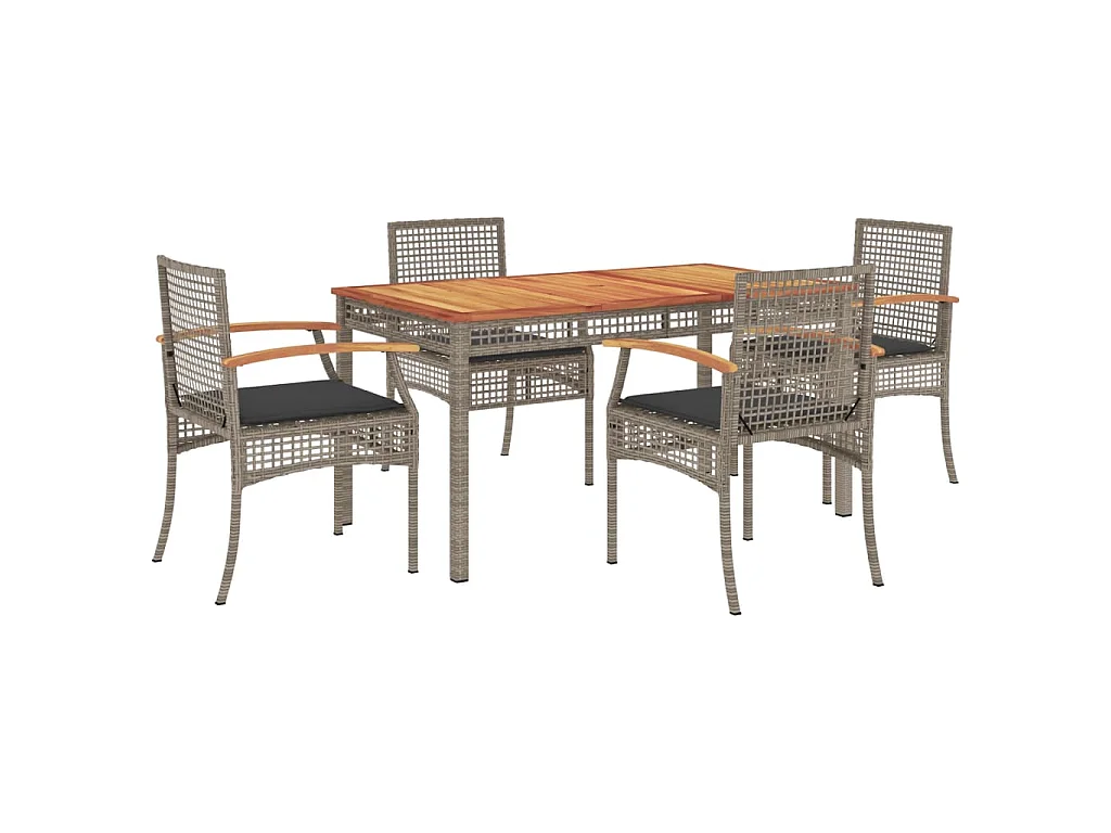 Ensemble à manger de jardin 5 pcs coussins gris résine tressée