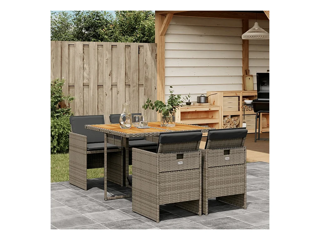 Ensemble à manger de jardin 5 pcs coussins gris résine tressée FR14595