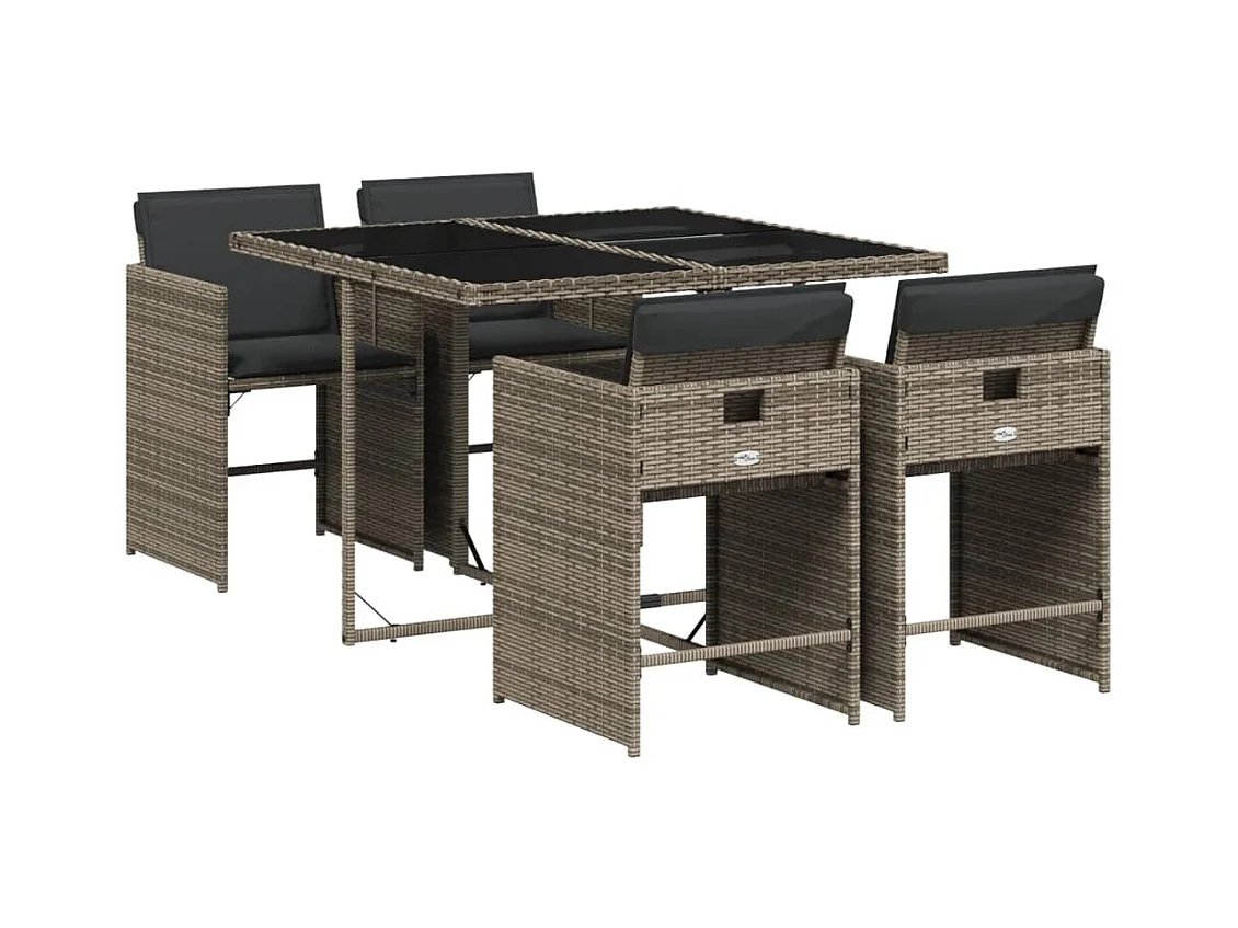 Ensemble à manger de jardin 5 pcs coussins gris résine tressée FR68091