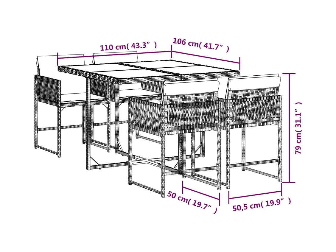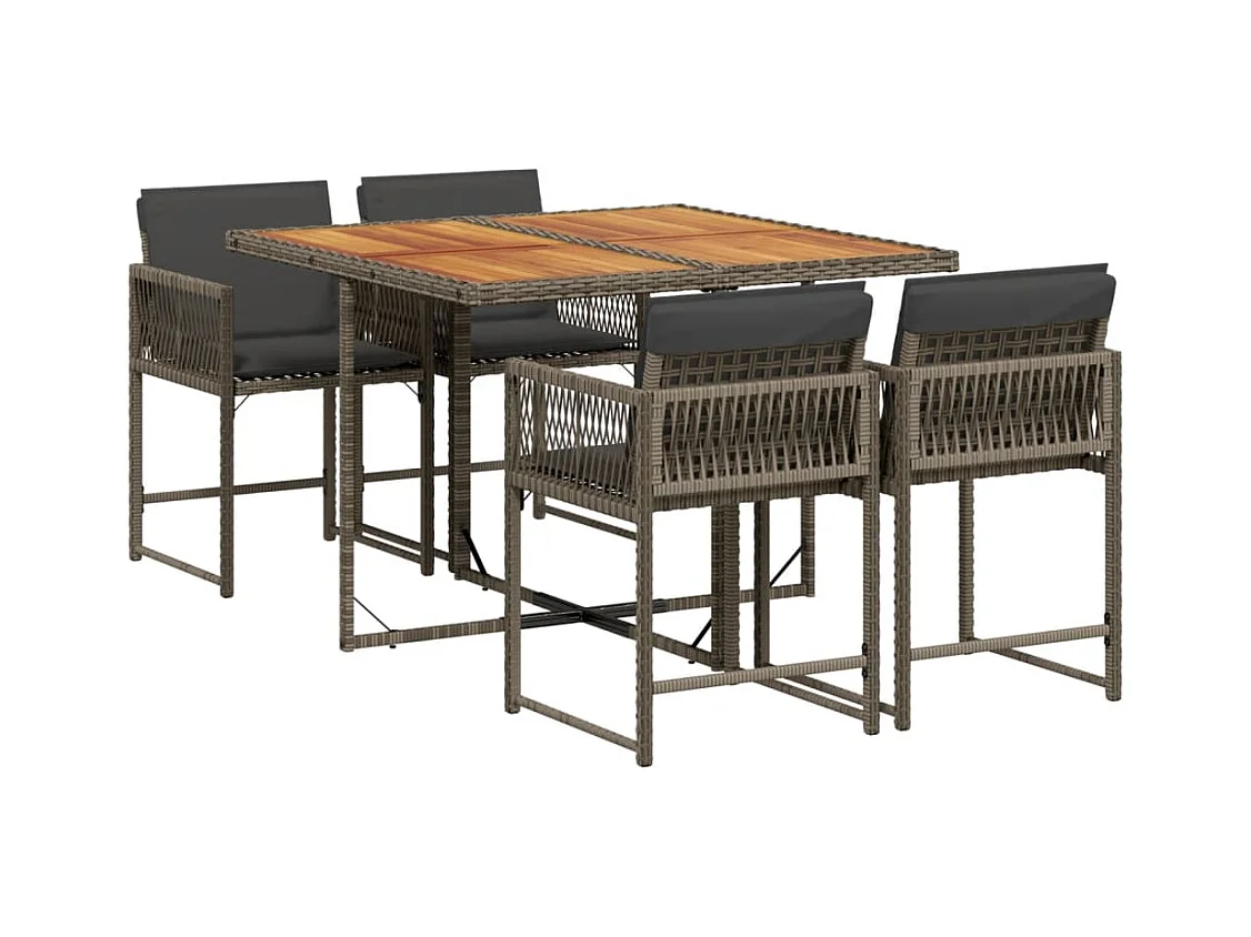 Ensemble à manger de jardin 5 pcs coussins gris résine tressée FR93286