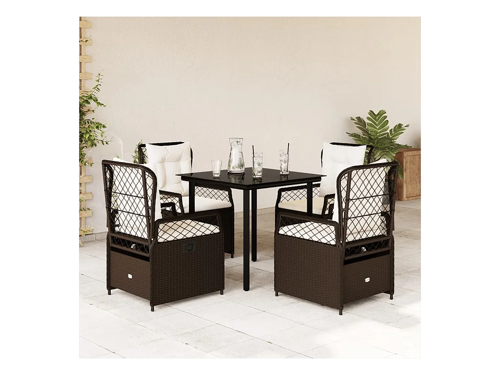 Ensemble à manger de jardin 5 pcs et coussins marron poly rotin