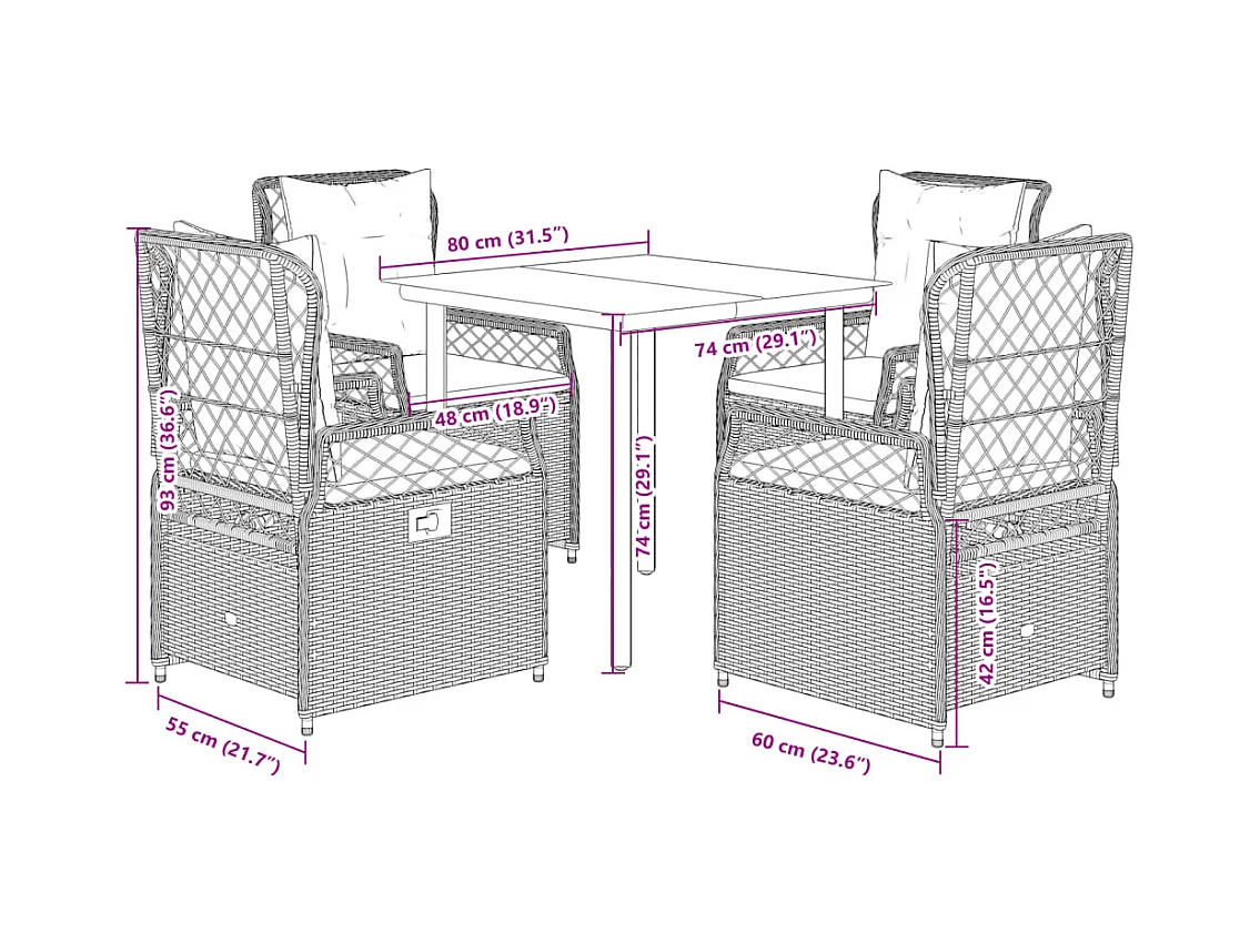 Ensemble de bistro 3 pcs avec coussins marron résine tressée