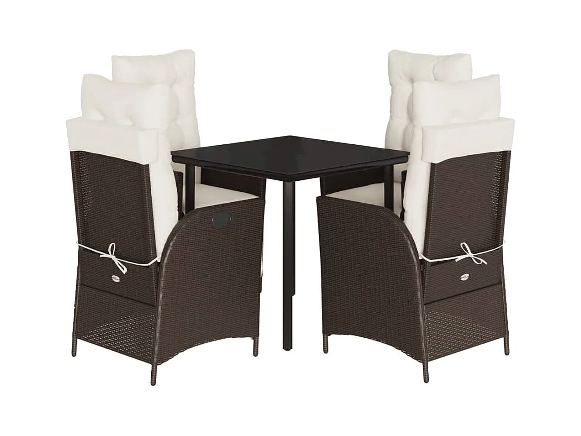 Ensemble à manger de jardin 5 pcs et coussins marron poly rotin