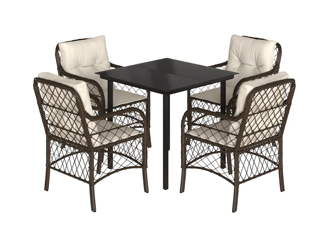 Ensemble à manger de jardin 5 pcs et coussins marron poly rotin