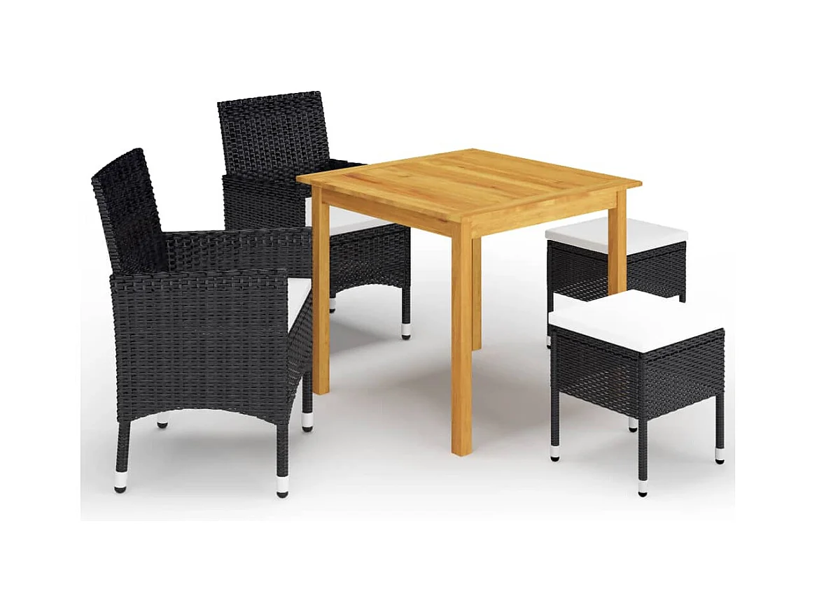 Ensemble à manger de jardin coussins 7pcs Noir Résine tressée
