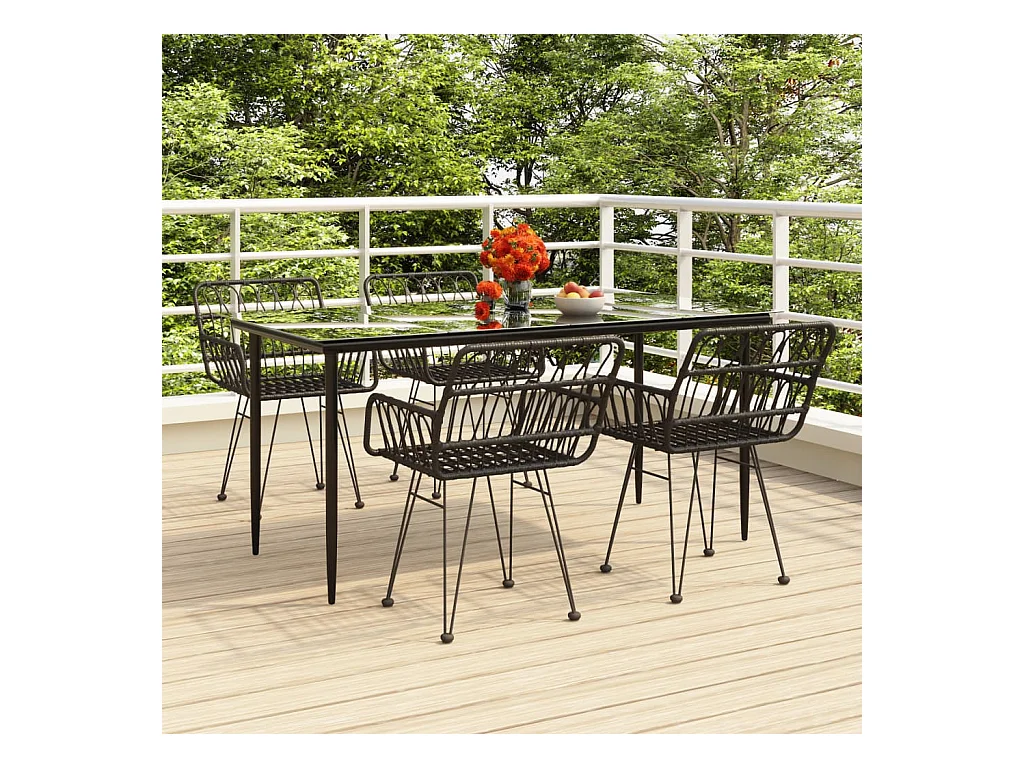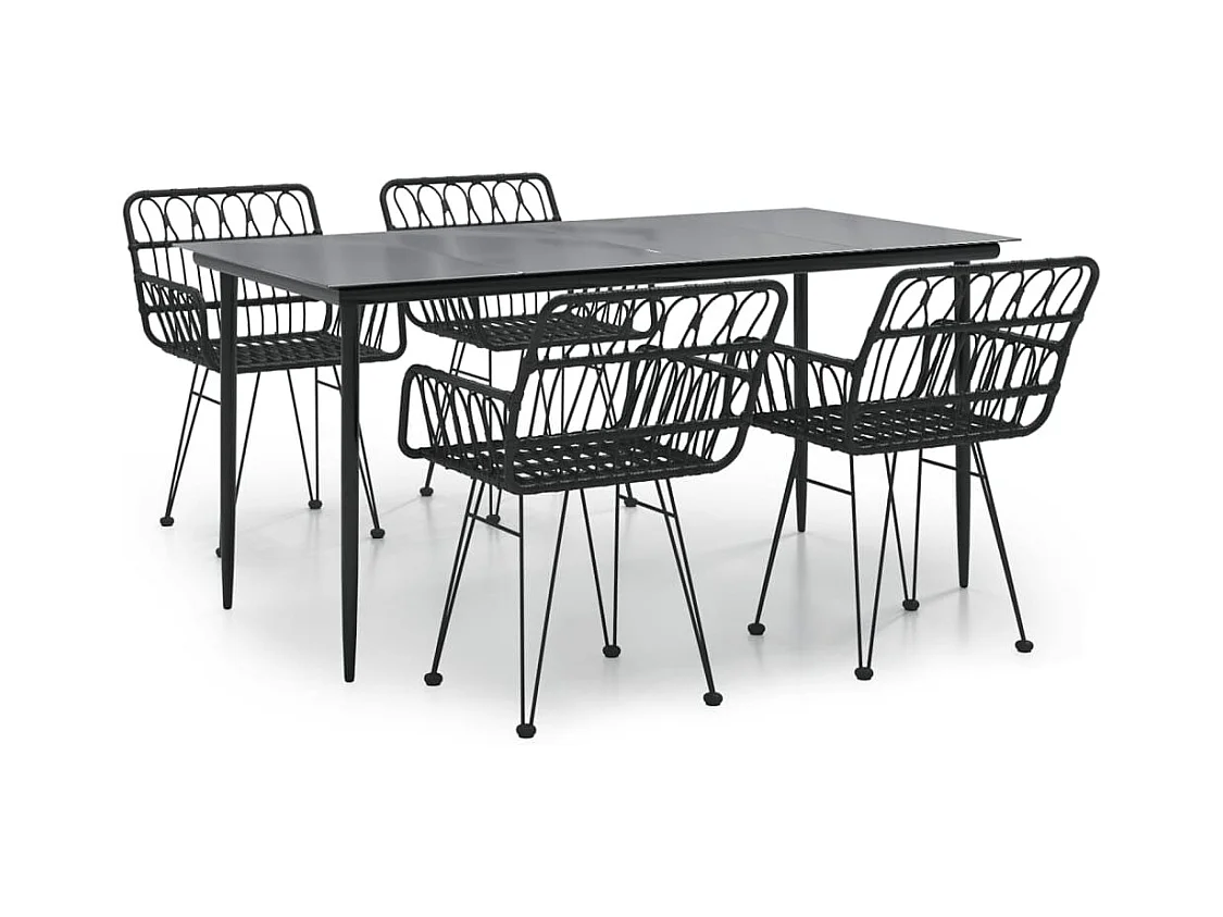 Ensemble à manger de jardin 5 pcs Résine tressée Noir