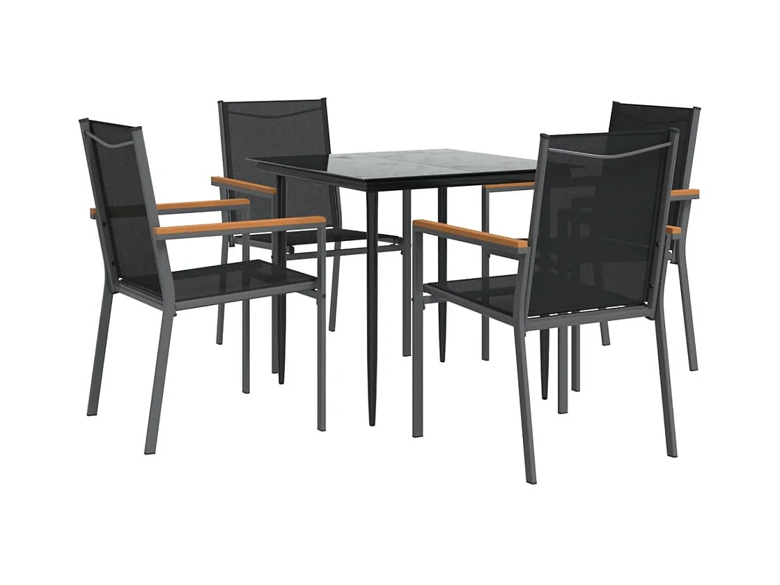 Ensemble à manger de jardin 5 pcs noir textilène et acier FR20651