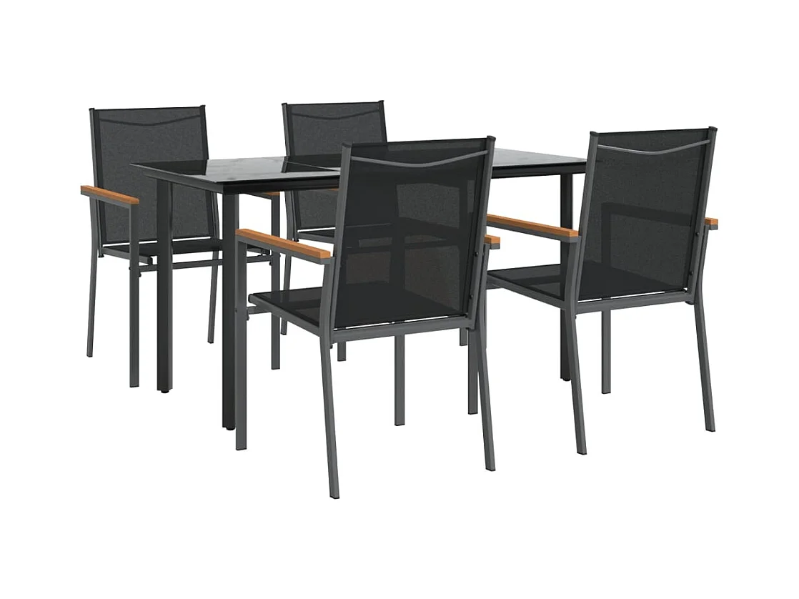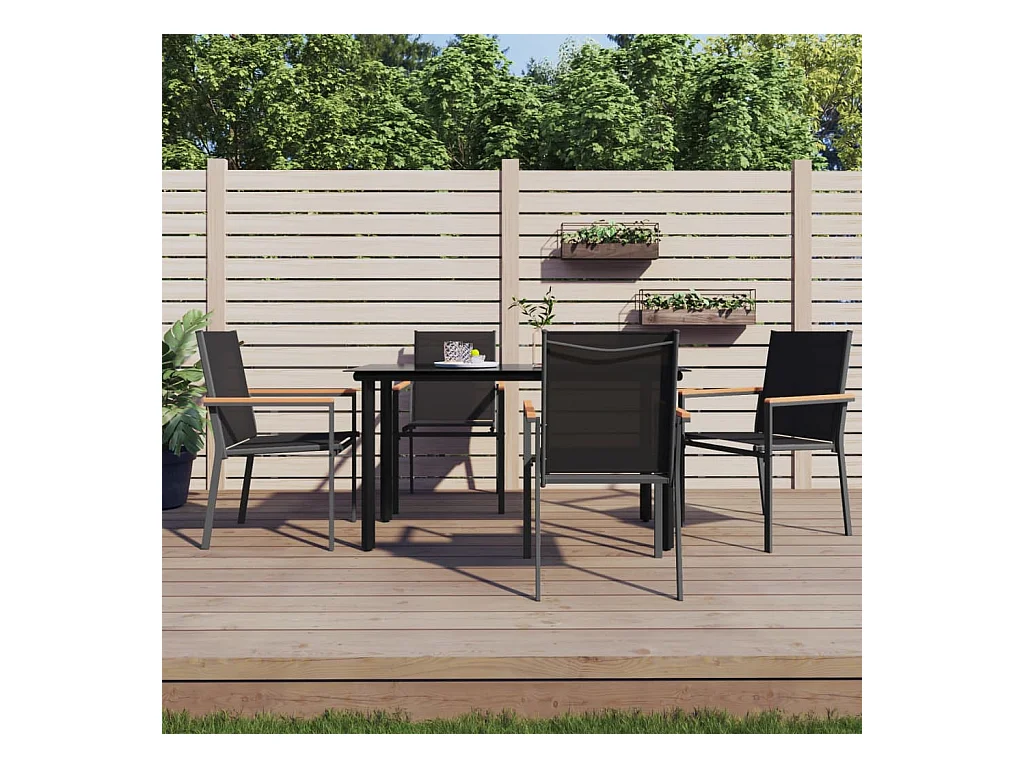 Ensemble à manger de jardin 5 pcs noir textilène et acier FR20651