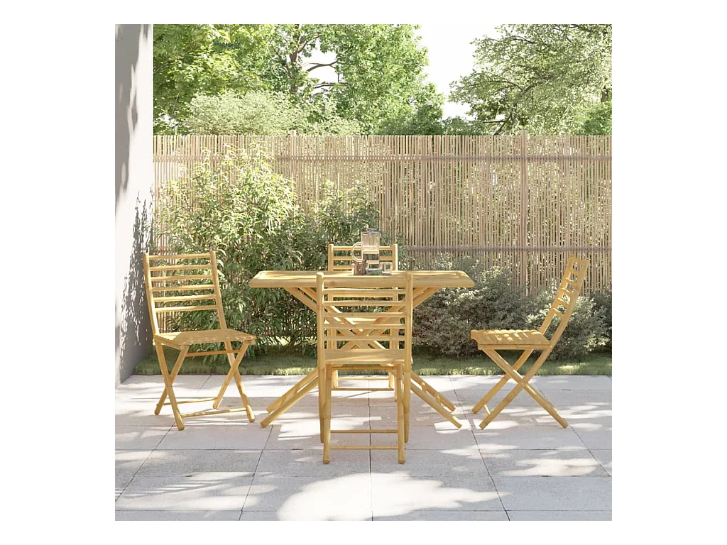 Mobilier à dîner d'extérieur pliable 5 pièces Bois solide de teck