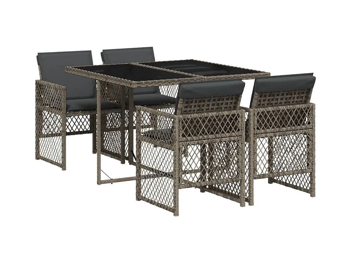 Ensemble à manger de jardin 5 pièces coussins gris résine tressée