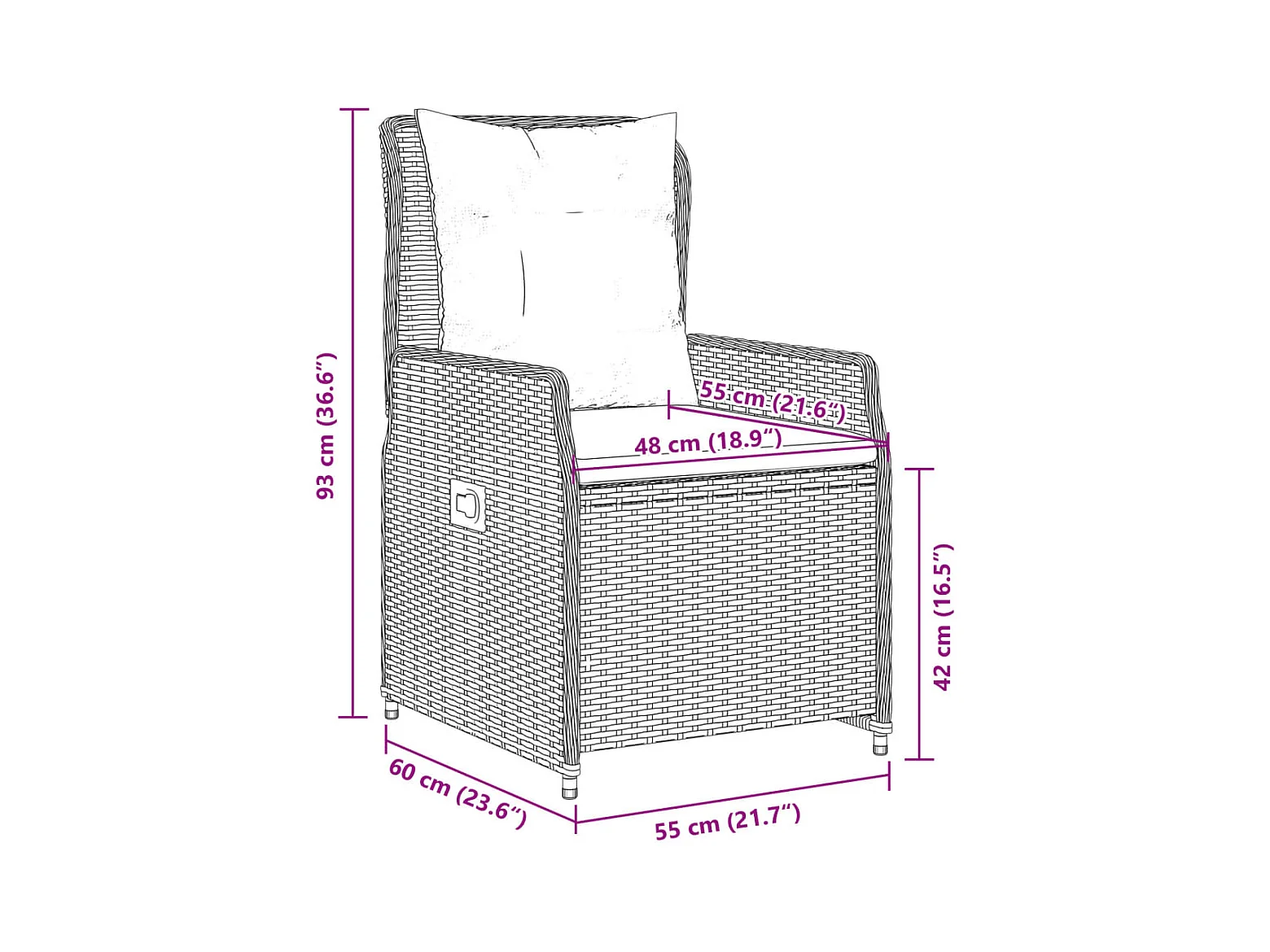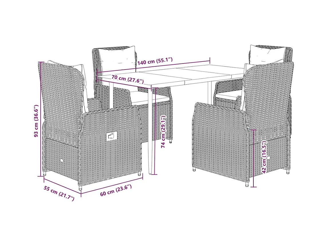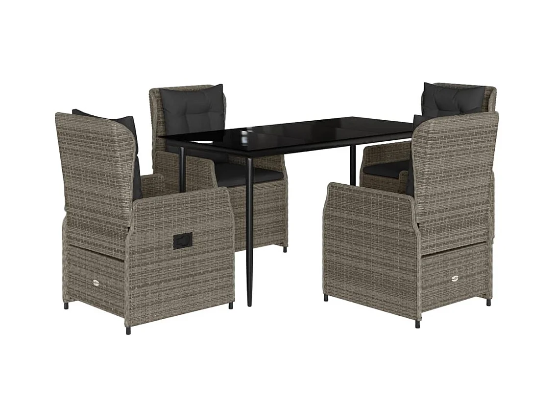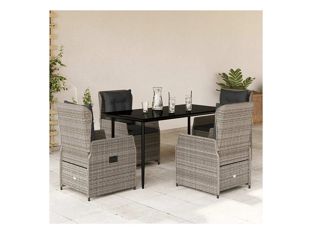 Ensemble à manger de jardin 5 pièces coussins gris résine tressée