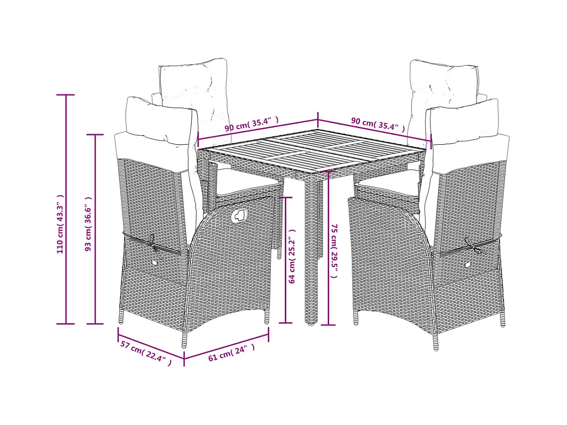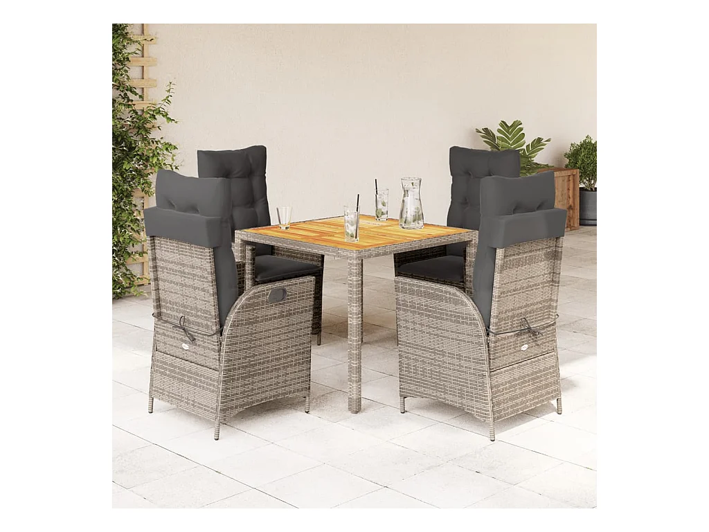 Ensemble à manger de jardin 5 pièces coussins gris résine tressée