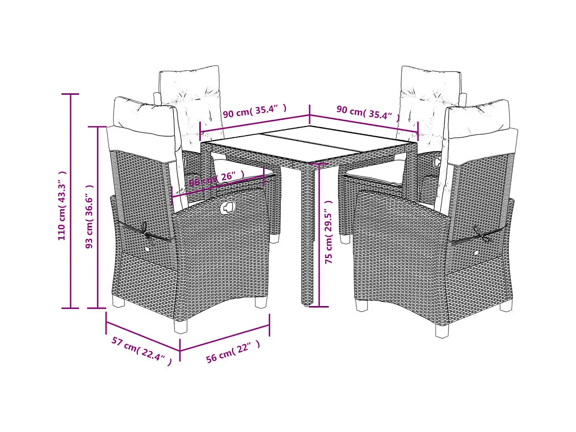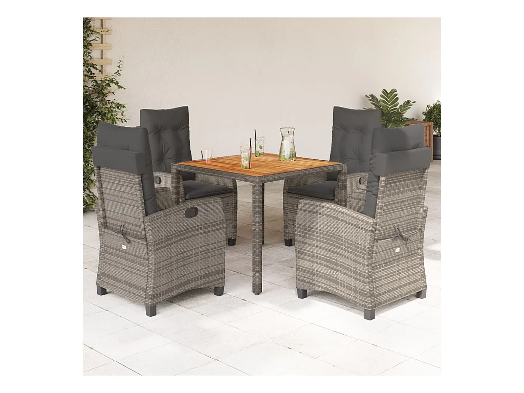 Ensemble à manger de jardin 5 pièces coussins gris résine tressée